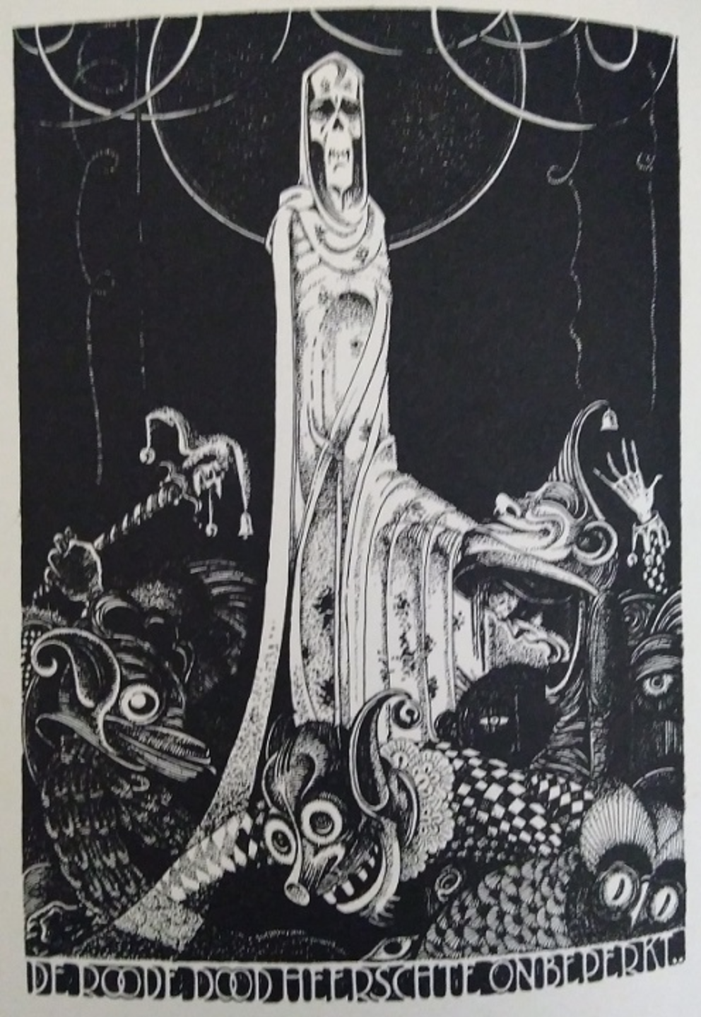 Dat veranderde toen ik enige tijd geleden in mijn plaatselijke kringloop op een verhalenbundel van Edgar Allan Poe stuitte. Nu is dat op zich niet bijzonder, maar dit was wel een heel mooie uitgave. Het ging namelijk om de bundel ‘Fantastische Vertellingen’, in 1930 gepubliceerd door de Haarlemse uitgeverij Tjeenk Willink & Zoon. Het boek was vormgegeven in een prachtige art deco-stijl en bevatte een groot aantal stemmige en fraaie zwart-wit tekeningen van Albert Hahn junior (een pseudoniem van Albert Pieter Dijkman).
